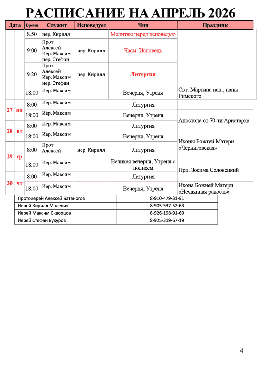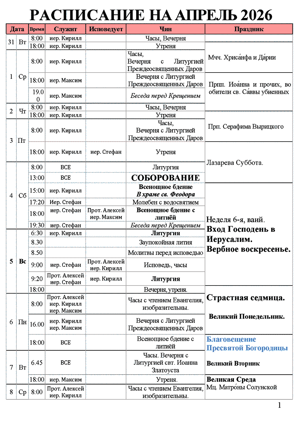 Совершается в часы богослужений согласно расписанию богослужений или по отдельной договоренности с конкретным священником. Контакты священников вы можете найти в разделе «ДУХОВЕНСТВО»